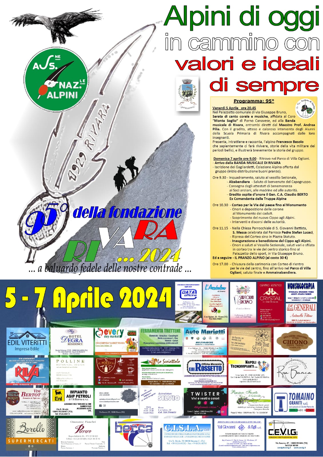 Domenica 7 Aprile 2024, il Gruppo ALPINI di Rivara festeggerà il 95° Anniversario della sua fondazione.