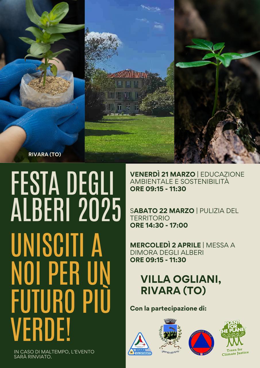 Il Comune di Rivara, in collaborazione con la Protezione Civile di Rivara, la ditta Teknoservice, l'associazione "Plant for the Planet Italia odv", ha organizzato la "Festa degli Alberi 2025" con tre giornate dedicate all'ambiente.