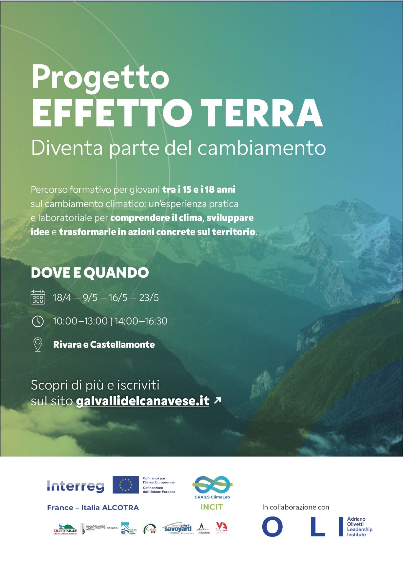 Il Gal Valli del Canavese è alla ricerca di giovani del territorio interessati a partecipare al Laboratorio EFFETTO TERRA, attività realizzata nell'ambito del progetto INCIT-PITER+GRAIES CimaLab, finanziato dal Programma Interegionale VI-A Francia-Italia Alcotra 2021-2027.