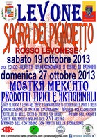 la Pro loco organizza la 5^ Sagra del Pignoletto Rosso di Levone in collaborazione con le altre Associazioni del paese e del Comune, con una mostra mercato inerente all'attività agricola connessa, artigianato, hobbistica e commerciale, per le vie del paese. Durante la giornata ci sarà possibilità di visite guidate al vecchio mulino, al ricetto e al forno a legna centenaio. All'interno dell'area sportiva esposizione di macchine agricole d'epoca.