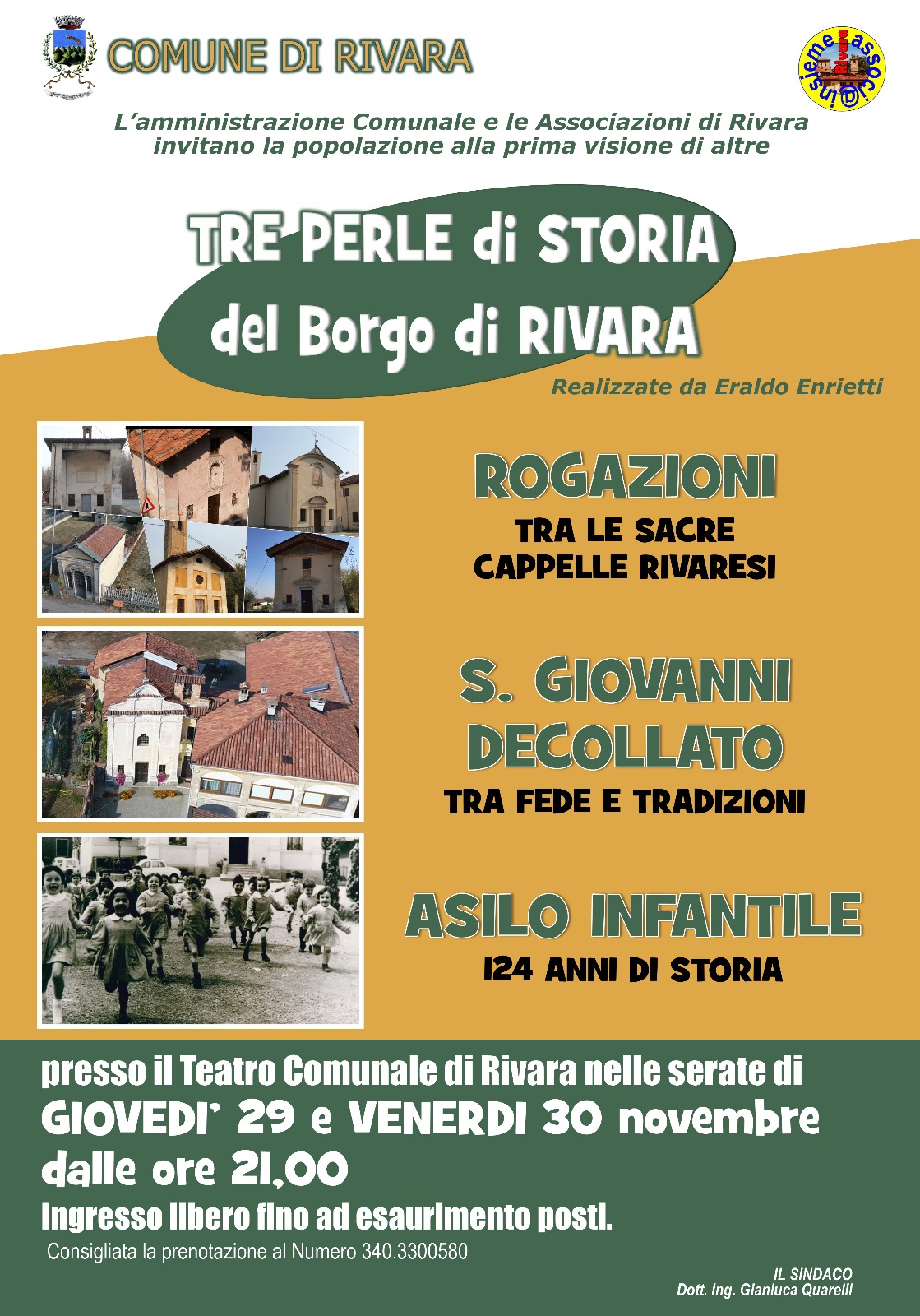 Proiezione documentari presso il Teatro di Rivara nei giorni 29 e 30 novembre ore 21.00.