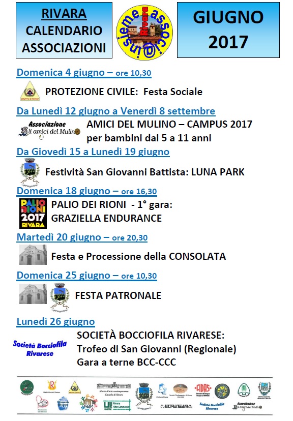 Calendario manifestazioni del mese di giugno 2017.