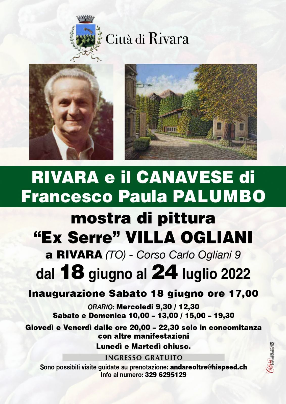 Mostra di pittura "RIVARA E IL CANAVESE" di Francesco Paula Palumbo presso i locali delle "ex Serre" di Villa Ogliani - Inaugurazione sabato 18 giugno ore 17.00.